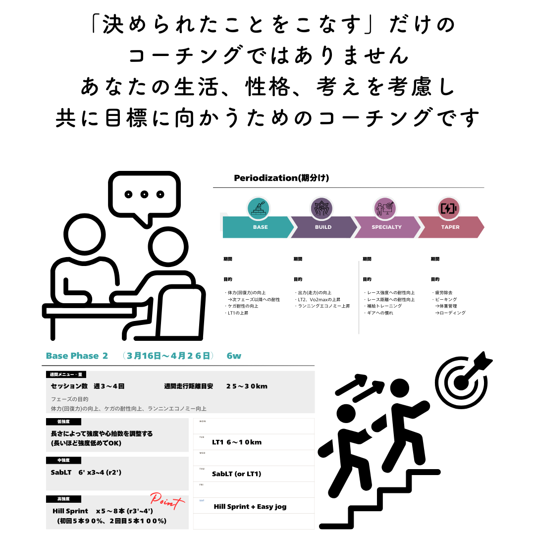 目標レースに向けた本気の4ヶ月。逆算型トレーニング設計と手厚いサポートで、勝負レースにピークを合わせます。